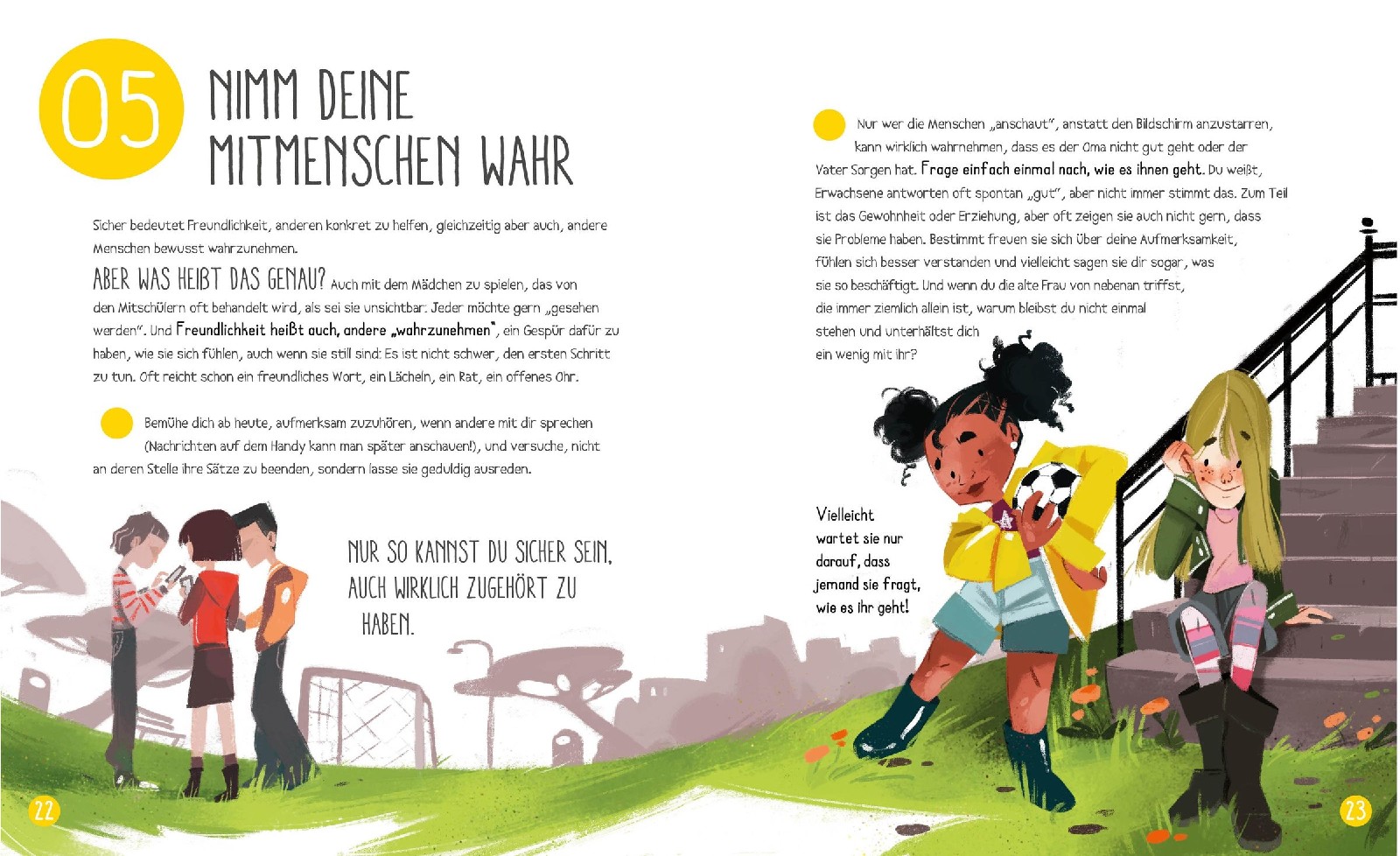 Vielleicht fragst du dich, wie du unserer Erde helfen kannst? Du kannst unnötige Käufe, Autofahrten oder Müll vermeiden. Du kannst Egoismus und Rassismus mit Gerechtigkeit entgegenwirken. Oder du nimmst eine freundliche Haltung gegenüber allen anderen Menschen, Tieren und Pflanzen ein - du musst bloß den ersten Schritt machen. Freundlichkeit ist wie ein Geschenk an dich selbst, deine Mitmenschen und die Gesellschaft: In diesem Bilderbuch lernst du dazu 10 Aktionen kennen, die du zu Hause oder in der Schule in die Praxis umsetzen und sie mit Freunden und Familie teilen kannst. Stell dir nur vor, was alles passieren wird, denn Freundlichkeit steckt an.