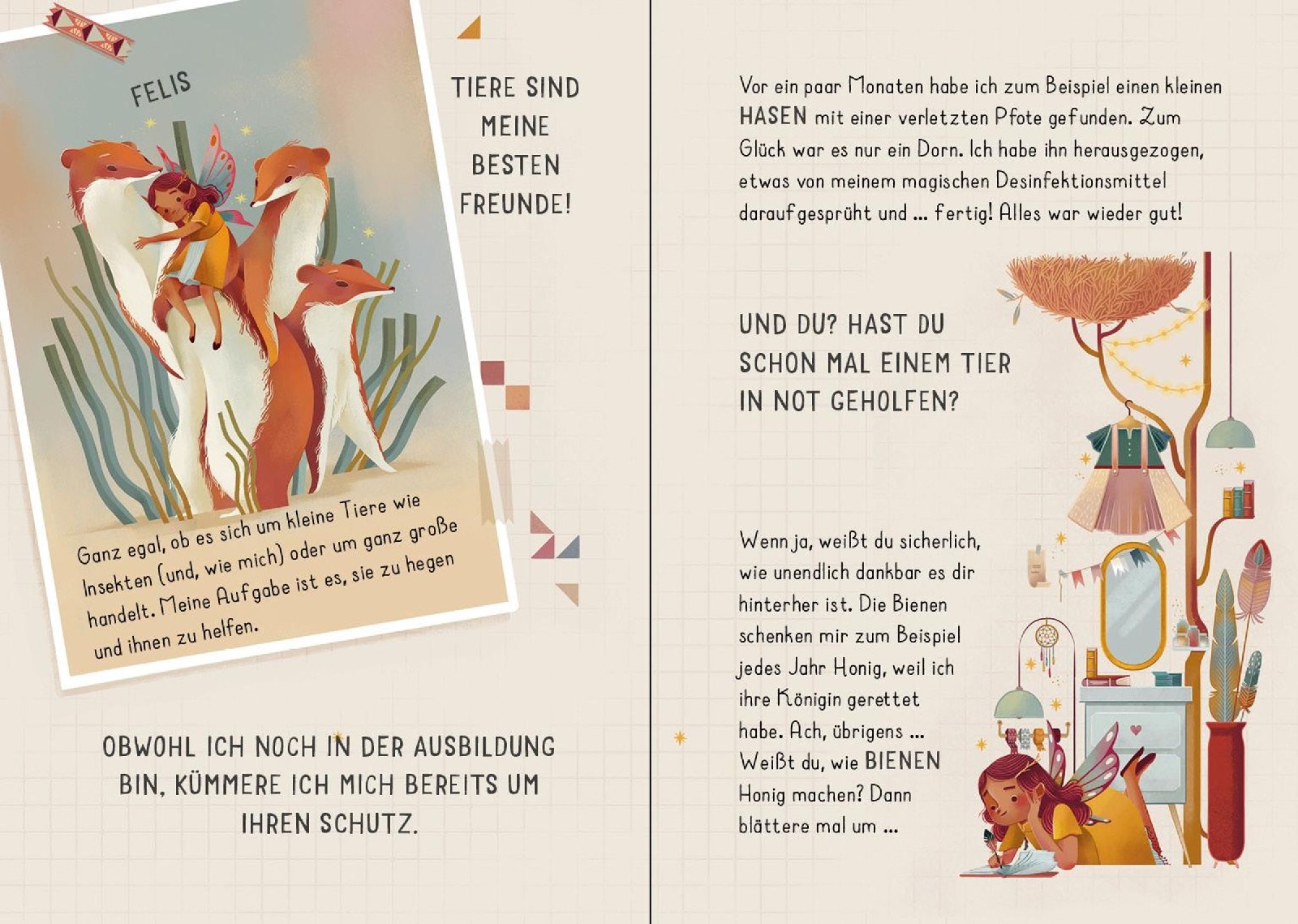 Jetzt kannst du die Gemüsefee Holundi, die Wetterfee Sola und Felis, die Fee der Tiere, überall hin mitnehmen! Angelehnt an die Abenteuer der drei Feenfreundinnen aus dem Vorlesebuch ,Die zauberhafte Welt der Feen' hält dieses neue Aktivitätsset jede Menge Zubehör aus dem magischen Reich der Feen für dich bereit, das deiner Fantasie Flügel verleiht: Spiele, Bastelmaterial, eine Gute-Nacht-Geschichte. Du findest darin viele Figuren, mit denen du dir eine eigene zauberhafte 3D-Feenwelt schaffen kannst. Einfach die gestanzten Feen, Gebäude oder zauberhaften Extras wie Dekoration und Möbel entnehmen, in die Standfüße aus dickem Karton stecken und losspielen.