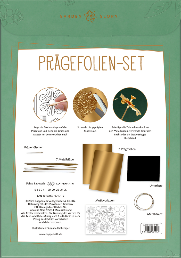 Zauberhaftes DIY-Erlebnis mit goldenem Glanz! Dieses Prägefolien-Set für einen Blumenstrauß mit Bienen vereint kreative Freude und dekoratives Ergebnis. Mit Prägefolien, Werkzeug, Unterlage und Motivvorlagen entsteht ein eleganter Blumenstrauß, in dem sich kleine Bienen tummeln - perfekt als persönliches Geschenk oder zum Verzieren der eigenen vier Wände. Ideal für entspannte Bastelstunden, und es ist alles dabei, was man braucht, um gleich loszulegen und das bezaubernde Ergebnis zu bewundern.